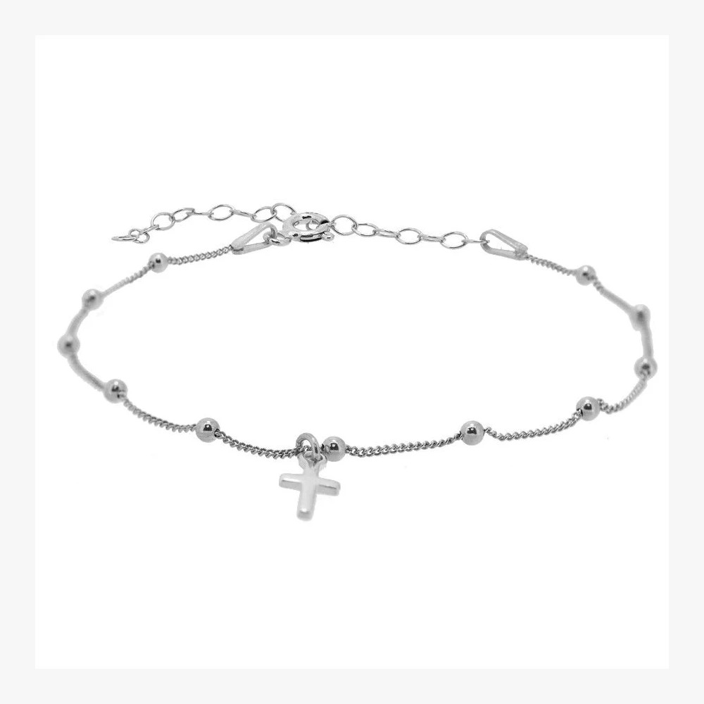 Pulsera plata rodiada o plata bañada en oro con detalle de cruz cantidad